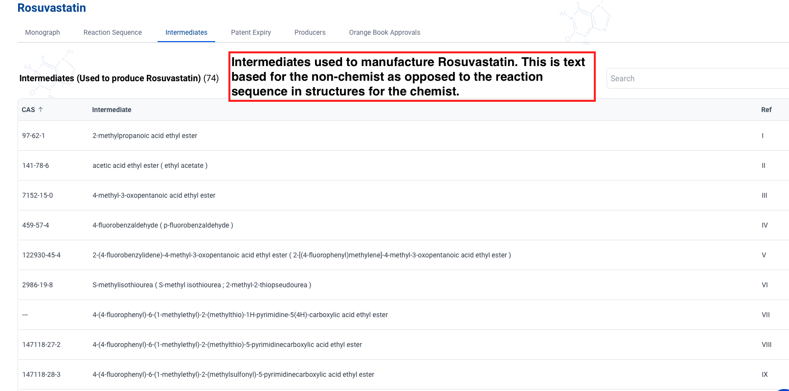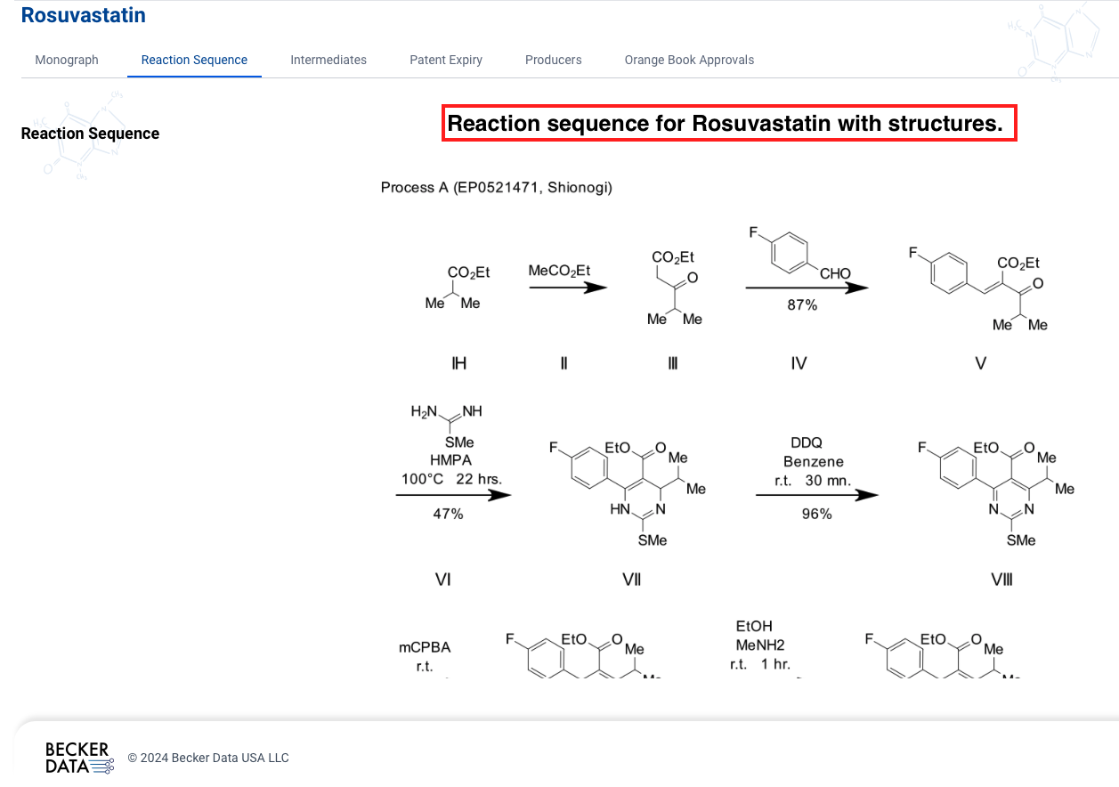 View complete reaction sequences in structural format, making it easy to understand manufacturing processes.
