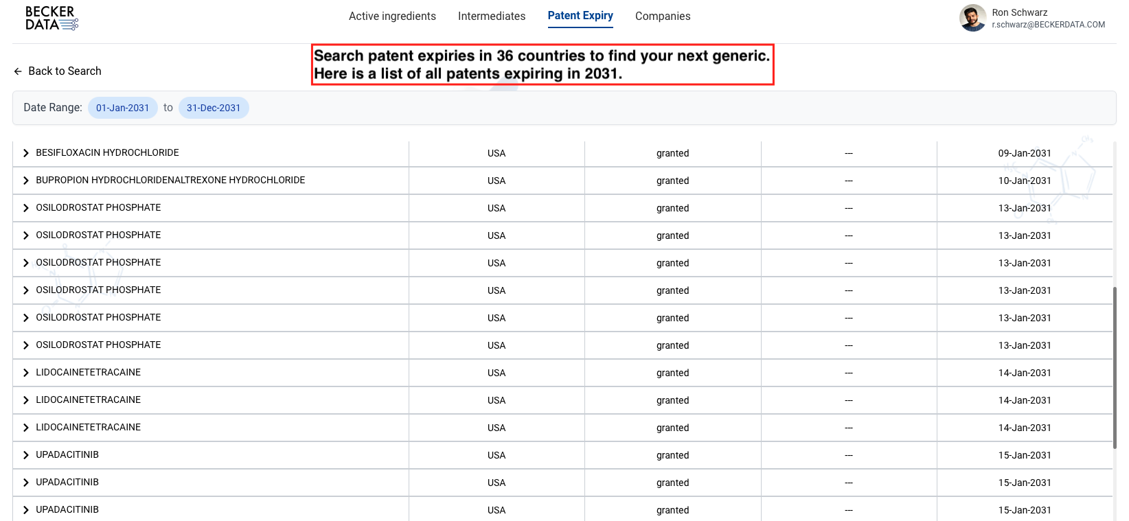 Identify upcoming generic opportunities and plan your market entry strategies effectively.